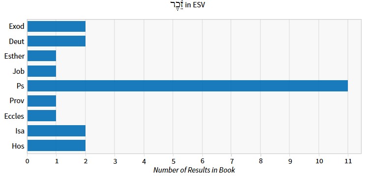 “Like the Akk. zikru, the term is also used in human contexts as a parallel and synonym of “name” or “fame” (Prov 10:7; Hos 14:7 [8]). When used of God, this latter meaning also applies (Exod 3:15; Ps 30:5; 97:12; 102:12 [13]; NRSV “name”; 135:13; Isa 26:8; Hos 12:5 [6]). This usage is developed from a basic meaning of invocation or proclamation and corresponds to the hi. of the vb. In Ps 6:5 [6] the parallelism indicates that the meaning is not remembrance but praise (Childs, 71; Schottroff, 294–95). In Esth 9:28 recounting the message of Purim seems to be in view (Childs, 72). To “celebrate” God’s goodness in Ps 145:7 is to engage in proclaiming it in worship. Similarly, in Ps 111:4 the זֵכֶר that God established for his wonders denotes proclamation of the Exodus (Childs, 22; Schottroff, 193). [NIDOTTE]